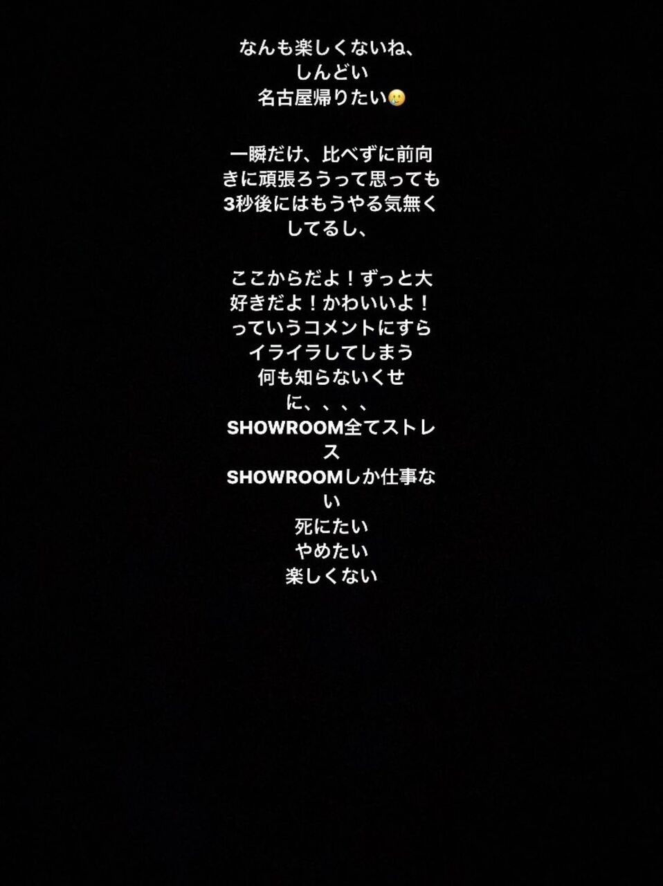 【悲報】STUメン「SHOWROOMしか仕事ない 死にたい やめたい 楽しくない」