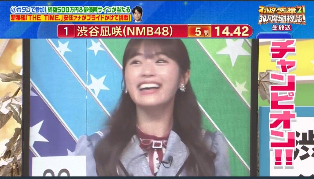 【朗報】NMB48渋谷凪咲がTBSオールスター感謝祭でチャンピオンになる!