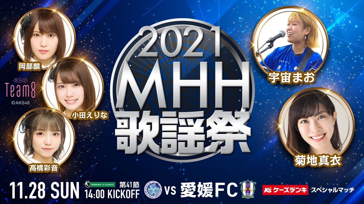 この歌謡祭には水戸ホーリーホック応援ソングアーティスト・宇宙まおさんも出演! AKB48チーム8からは岡部麟、髙橋彩音、小田えりなの3人が登場し、スタジアムを盛り上げます!