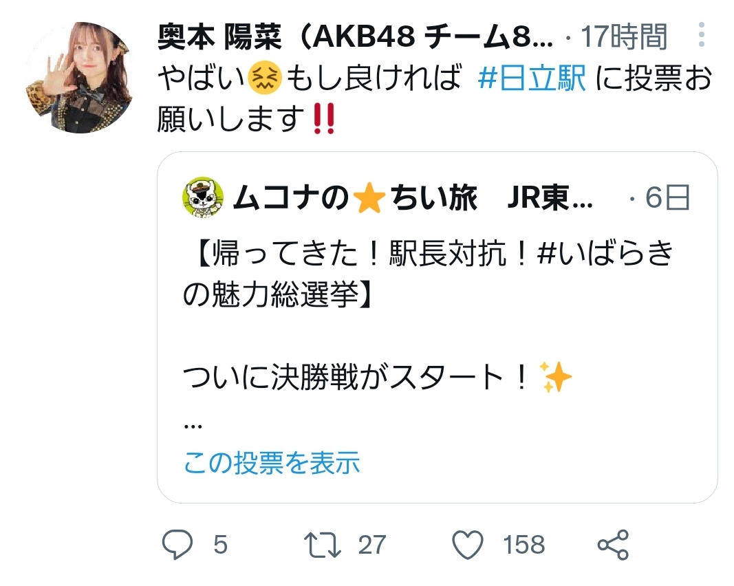 【朗報】いばらきの魅力総選挙、AKB48の呼び掛けにより日立駅が土壇場で逆転勝利www