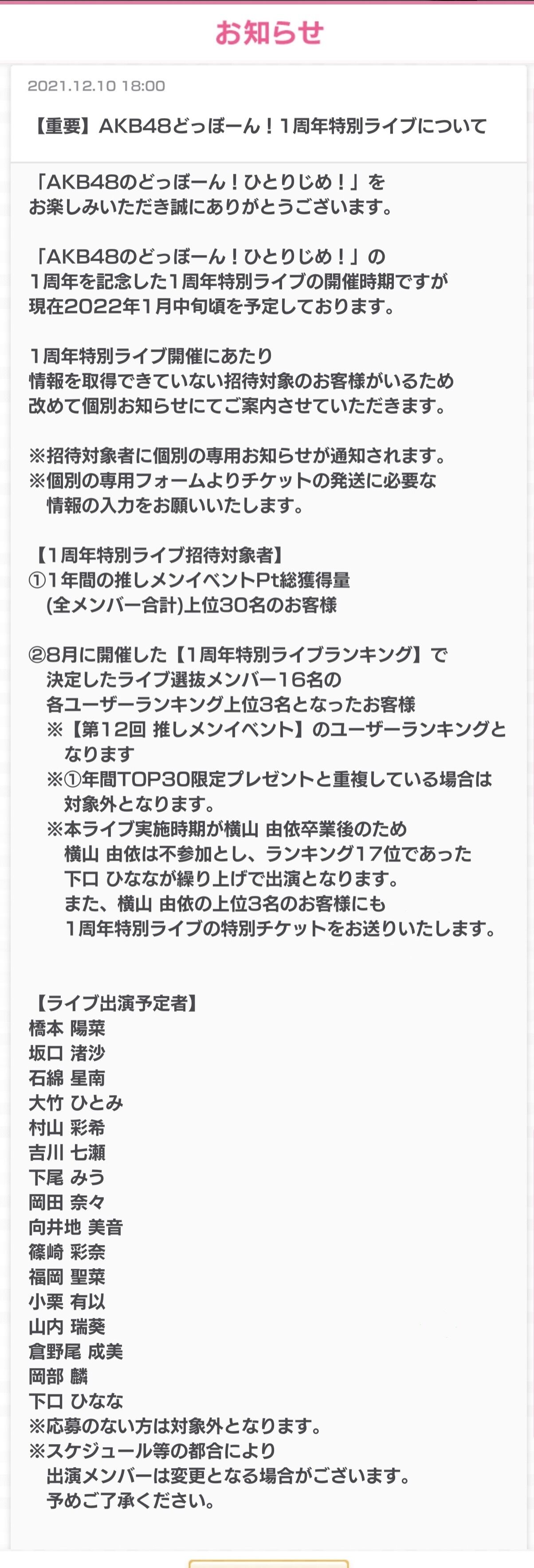 【速報】「AKB48のドボン」1周年記念ライブが2022年1月中旬に開催決定