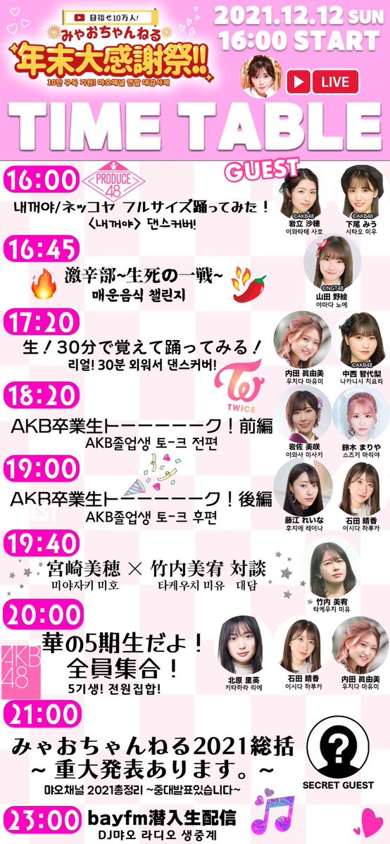 【AKB48】本日16:00~「みゃおちゃんねる年末大感謝祭!!」7時間生配信【宮崎美穂】