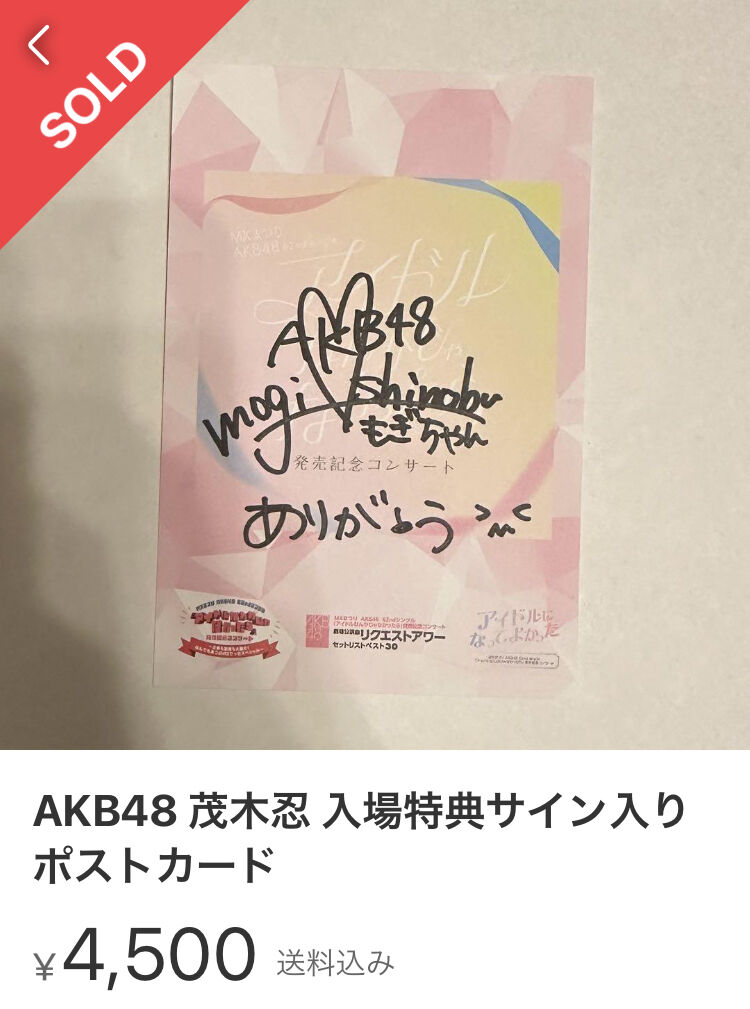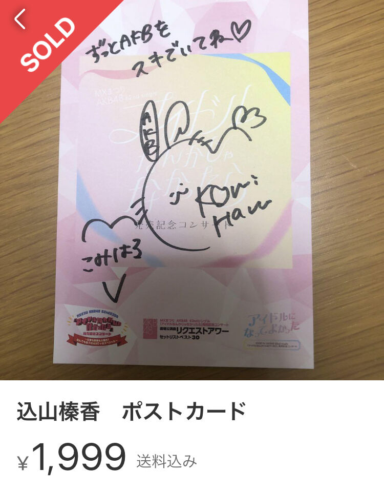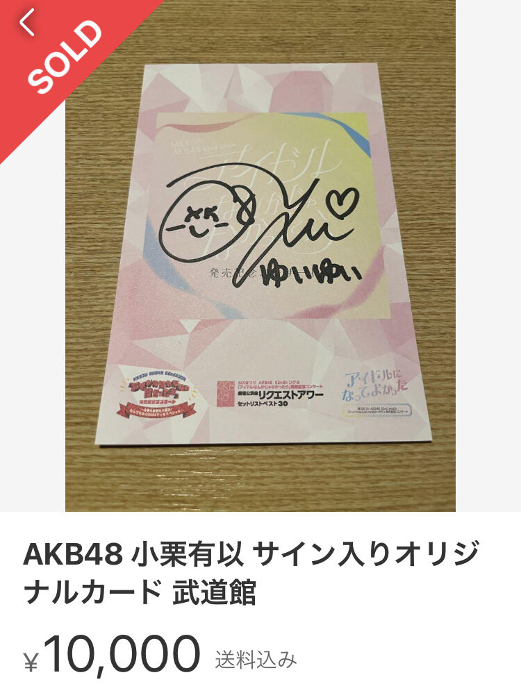 AKB武道館コンサート入場特典 メンバー直筆サイン入りポストカードの取引価格wwwwwwww