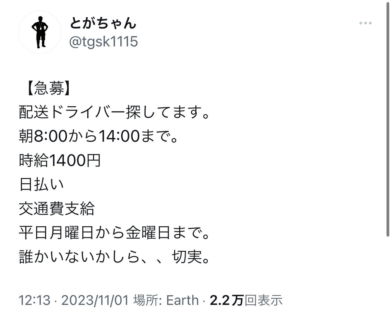 戸賀崎さんが配送ドライバーを急募してるぞ