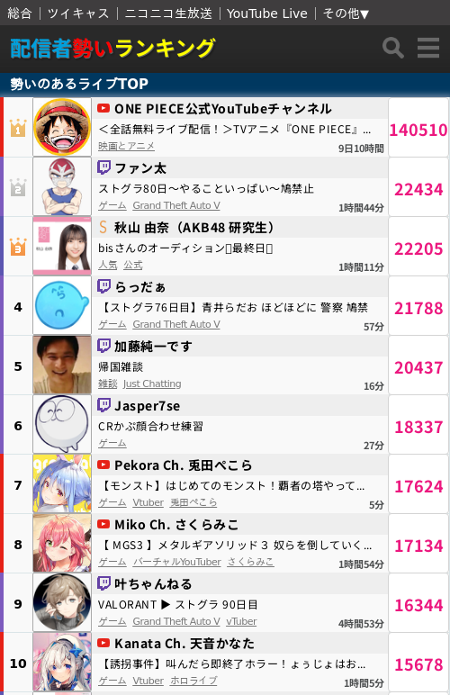 配信者勢いランキング