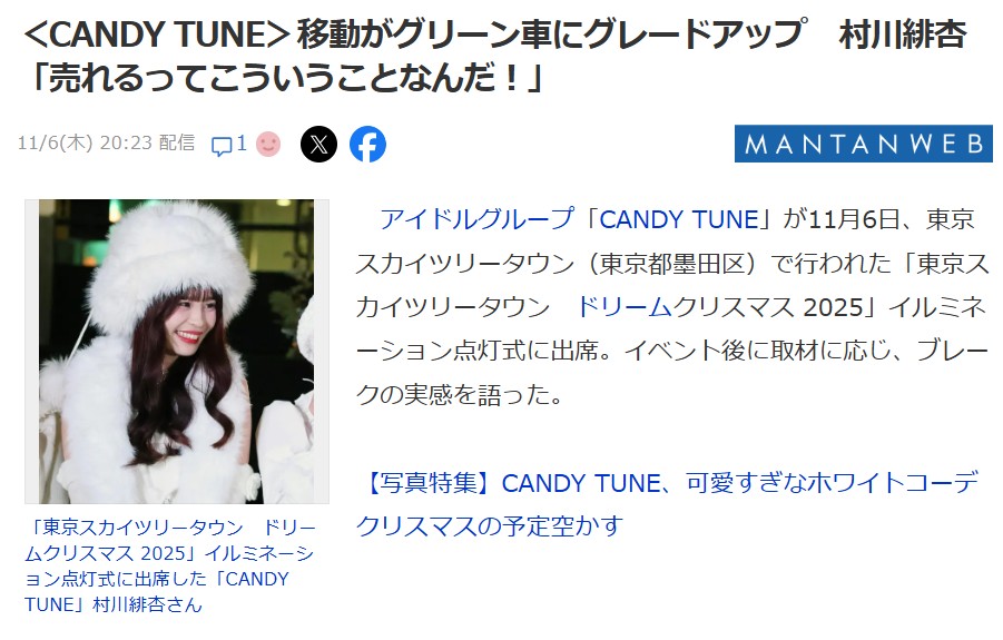 【元HKT48】CANDY TUNE・村川緋杏「移動がグリーン車になった。売れるとはこういうことなんだ」