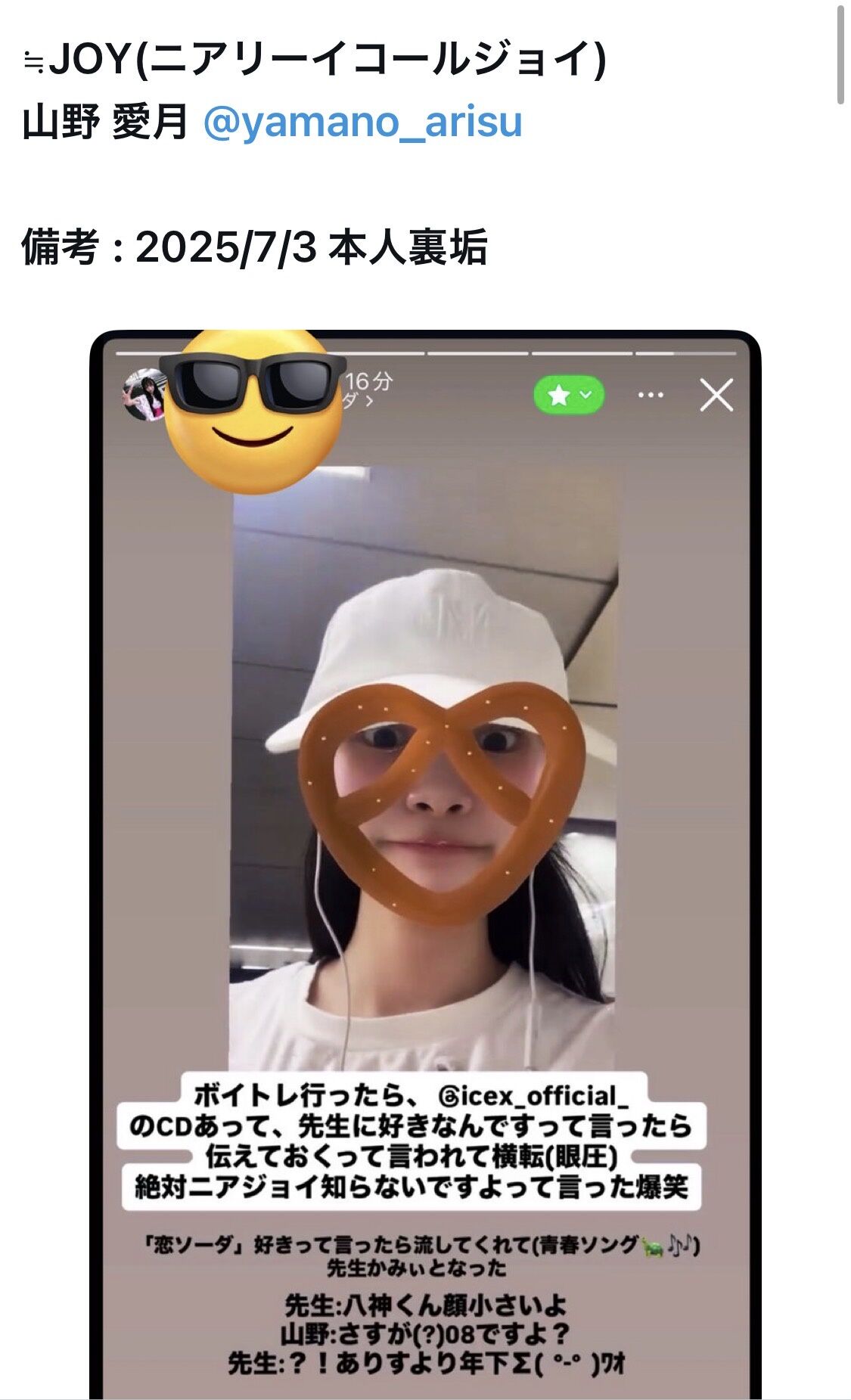 【闇深?】ニアジョイ山野愛月、裏垢流出でメン地下好きがバレる! 運営からも厳重注意処分くらう!!【指原莉乃プロデュースアイドル≒JOY・ニアリーイコールジョイ】