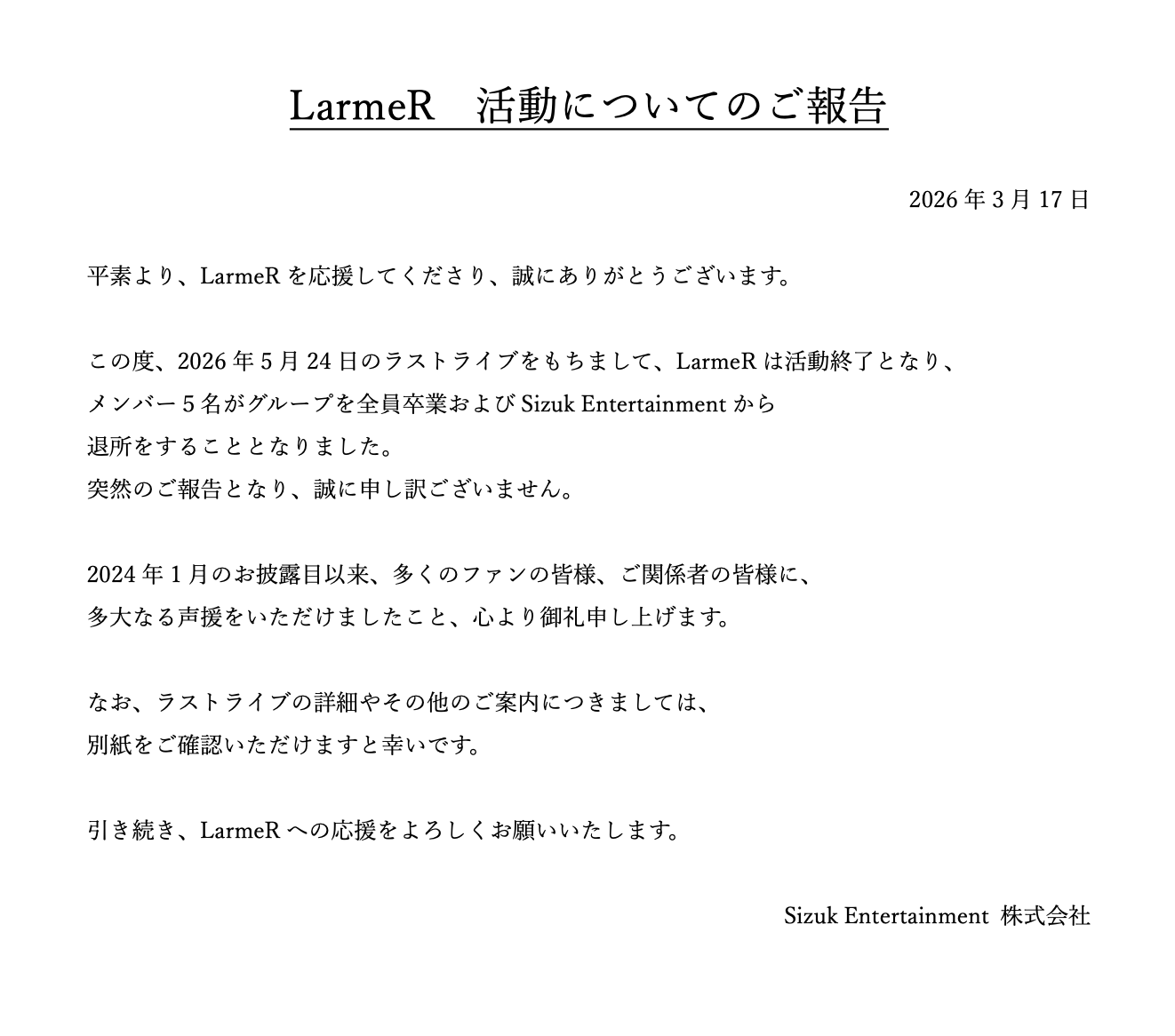 【悲報】「LarmeR」解散のお知らせ…【湯浅・俊龍・坂口渚沙】