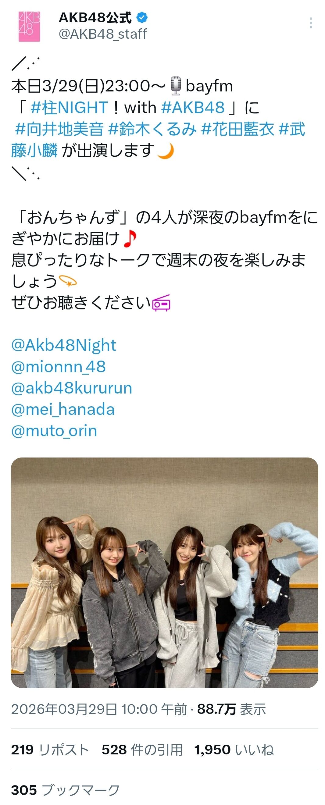 投稿日 2026年3月29日 19:34:36 (AKB48タイムズ)