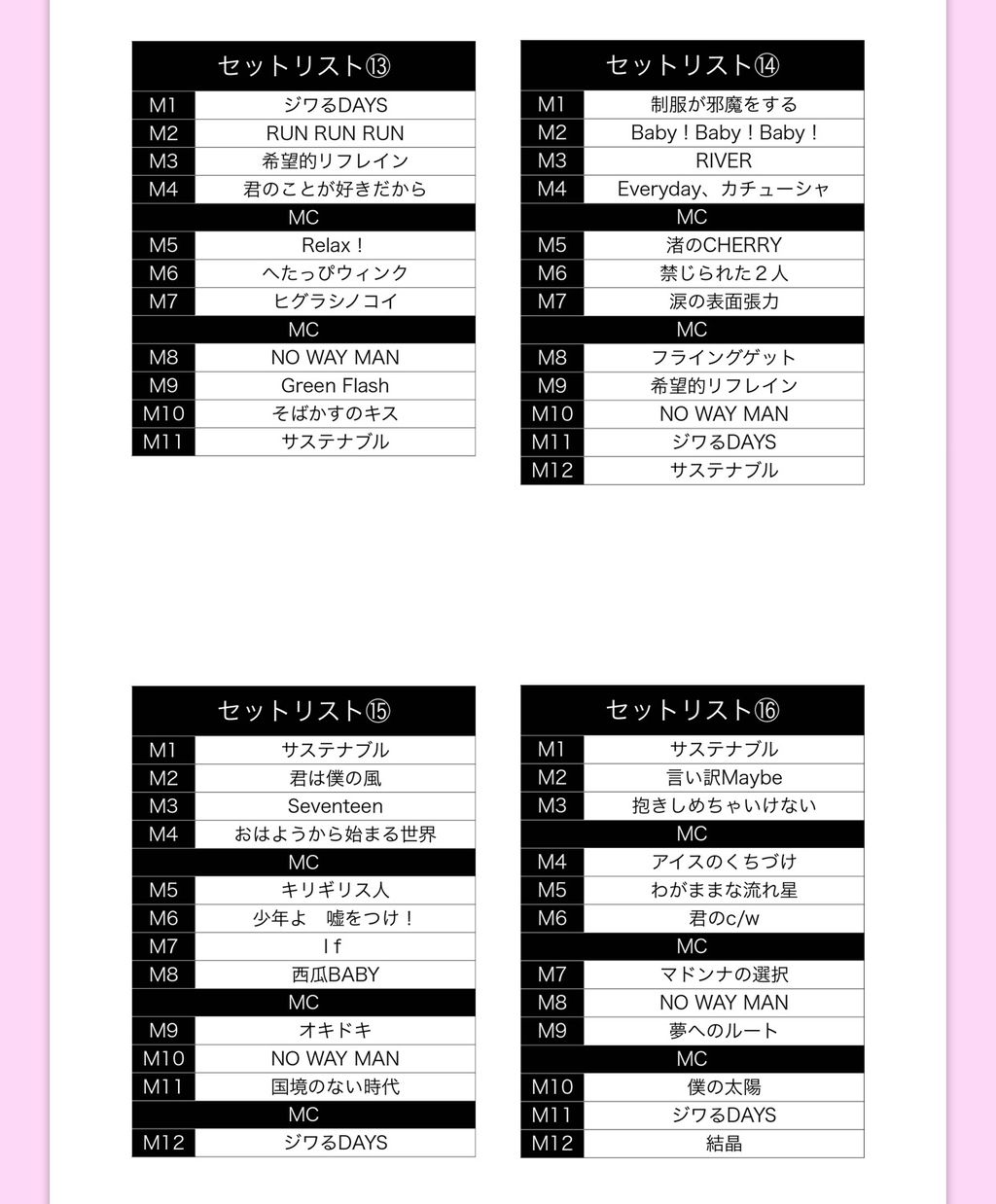 当日の握手会参加メンバーの中から16名それぞれが考えたセットリストをメンバー名を伏せた状態で公開し、お客様からの投票を行います。
