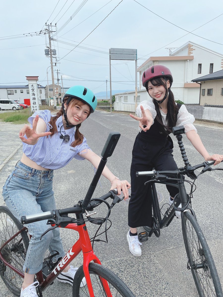 【坂本愛玲菜、森崎冴彩】HKT48の福岡撮影中!自転車で志賀島を半周