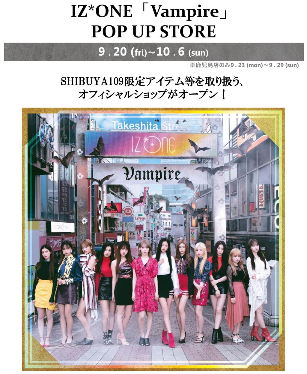 【お知らせ】IZ*ONEの日本3rdシングル「Vampire」の発売を記念記念して、『IZ*ONE「Vampire」POP UP STORE』がオープン!