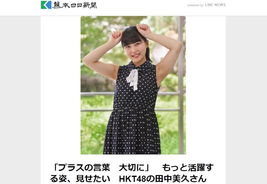 【田中美久】「プラスの言葉 大切に」 もっと活躍する姿、見せたい HKT48の田中美久さん(熊日新聞)