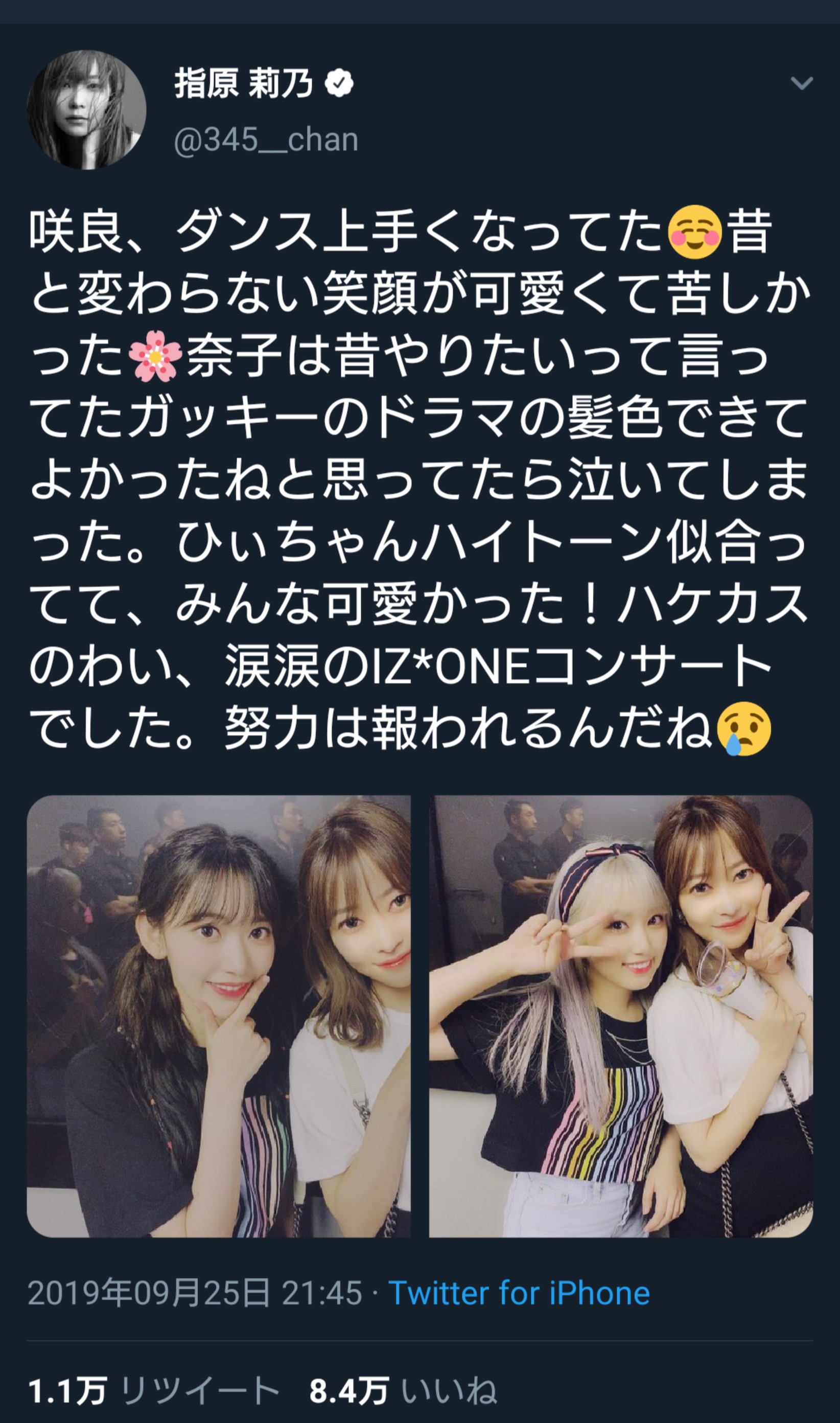 奈子は昔やりたいって言ってたガッキーのドラマの髪色できてよかったねと思ってたら泣いてしまった。ひぃちゃんハイトーン似合ってて、みんな可愛かった!ハケカスのわい、涙涙のIZ*ONEコンサートでした。努力は報われるんだね