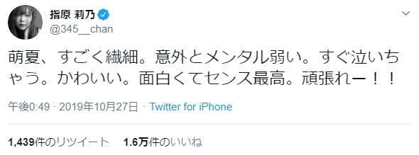萌夏、すごく繊細。意外とメンタル弱い。すぐ泣いちゃう。かわいい。面白くてセンス最高。頑張れー!!