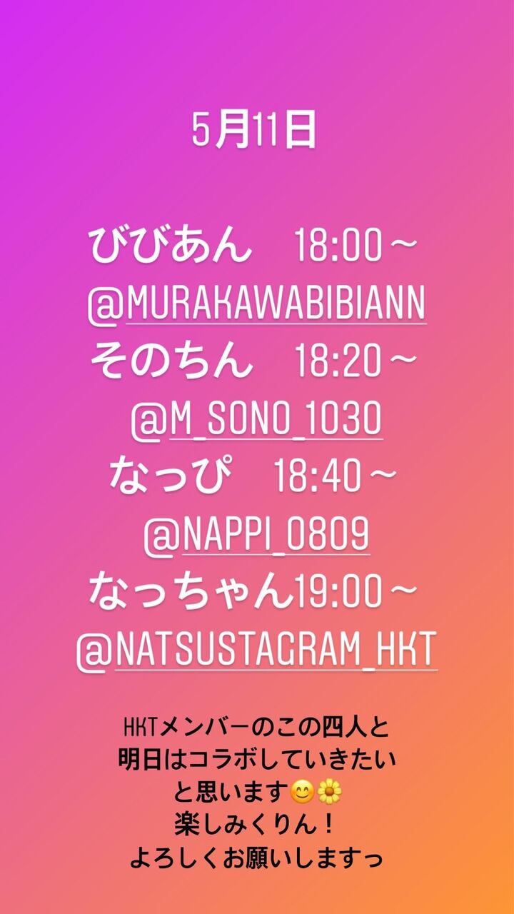 【田中美久】びびあん、そのちん、なっぴ、なっちゃんとコラボ配信予定
