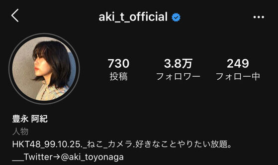 【豊永阿紀】インスタのカテゴリ「人物」となる