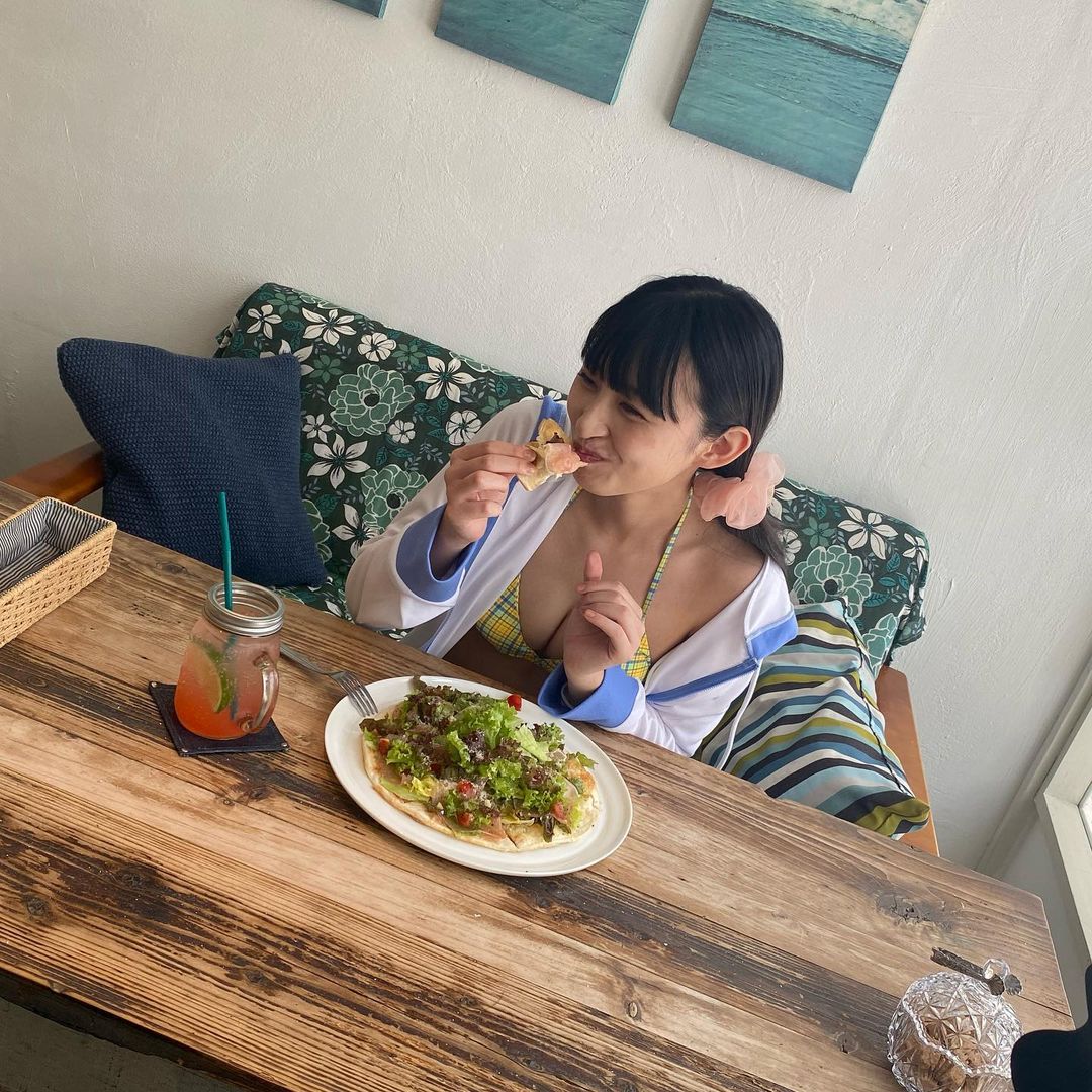 【松本日向】水着でピザ 漫画アクションのオフショット