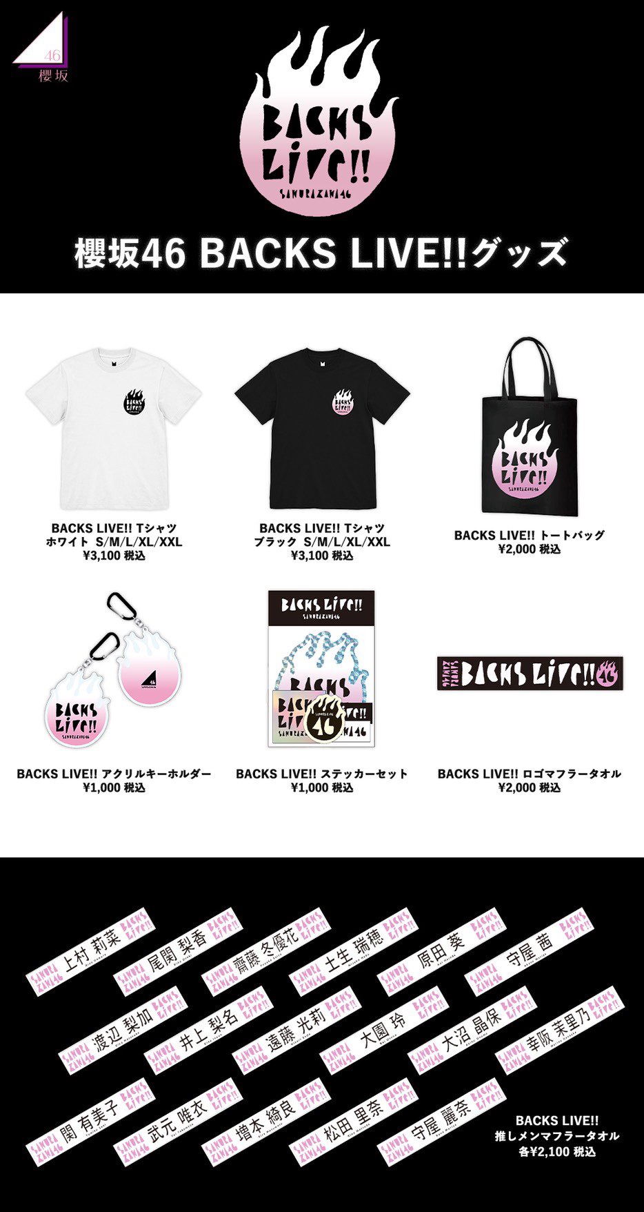 櫻坂46 オフィシャルグッズストアにて、櫻坂46「BACKS LIVE!!」 オフィシャルグッズ新商品のご注文受付を開始いたしました👕