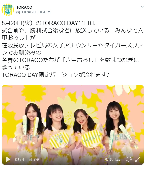 https://twitter.com/TORACO_TIGERS/status/1158936457156763648