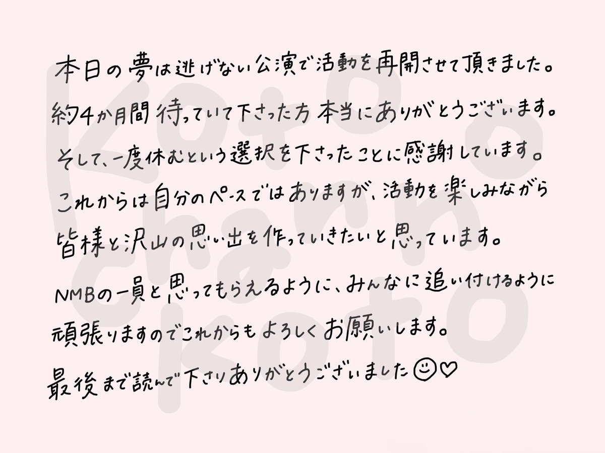【朗報】NMB48ドラフト3期研究生、杉浦琴音が活動を再開!!!