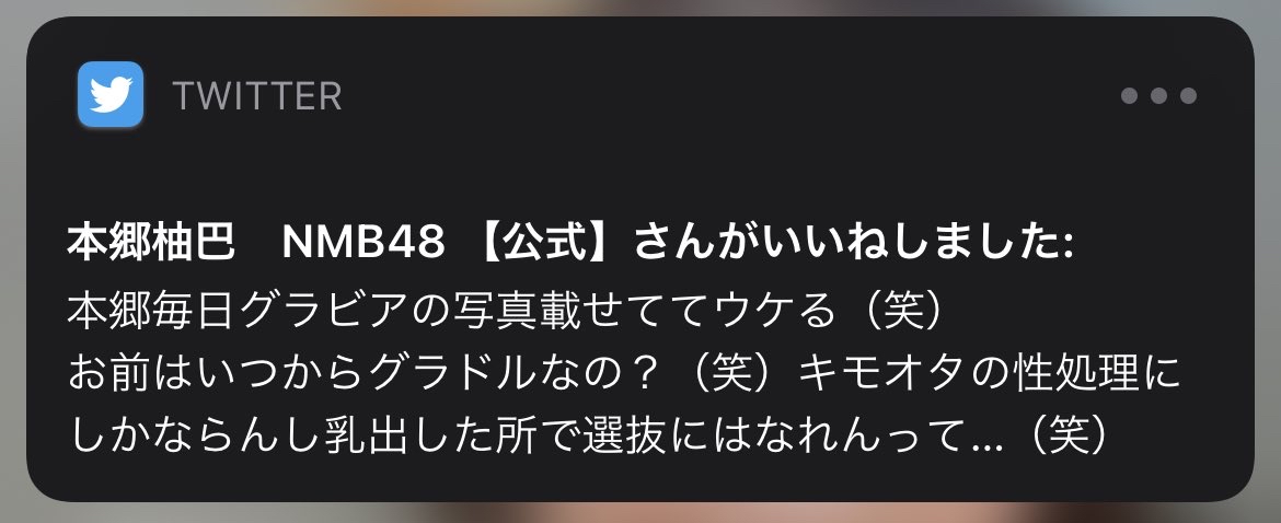 【NMB48】本郷柚巴、基地外ヲタの誹謗中傷ツイートに「いいね」