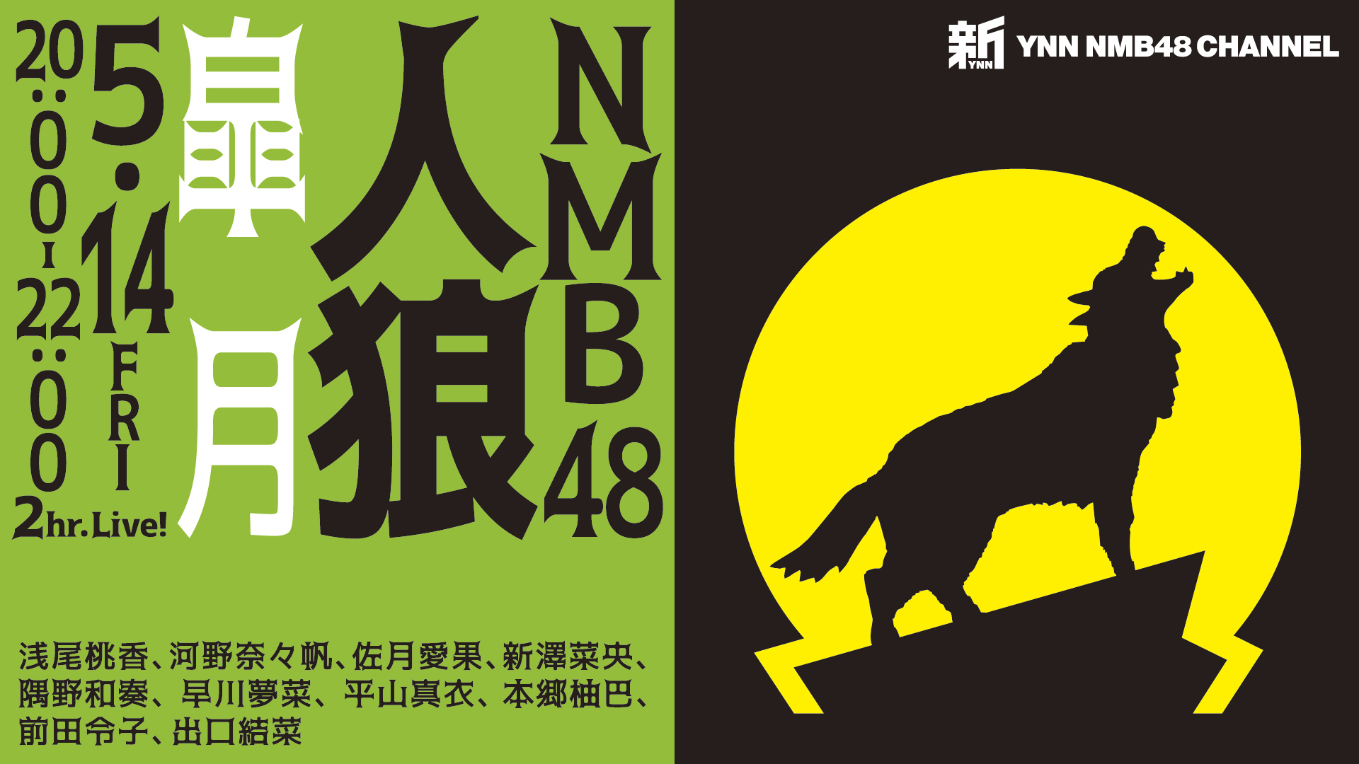 5/14(金) 20:00-22:00 #新YNN にて「NMB48人狼 皐月」出演:浅尾桃香、河野奈々帆、佐月愛果、新澤菜央、隅野和奏、早川夢菜、平山真衣、本郷柚巴、前田令子、出口結菜https://t.co/4L2j6R5jsr pic.twitter.com/HPasahGP01