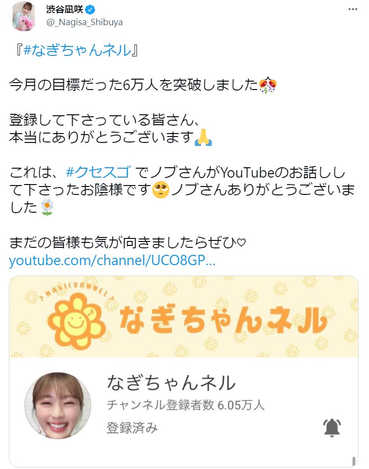 【朗報】千鳥ノブ、渋谷凪咲のYouTubeチャンネルをチェックしていた【NMB48】