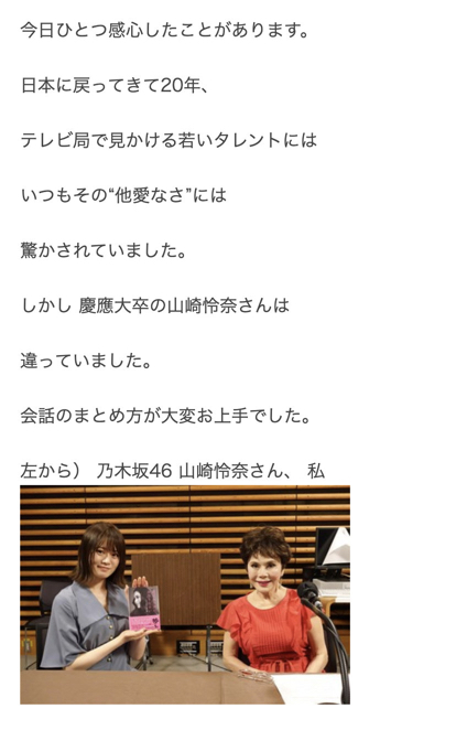 【乃木坂46】デヴィ夫人が大絶賛 “慶應大卒の山崎怜奈さんは違っていました”れなち凄い!