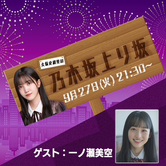 【乃木坂46】久保史緒里の乃木坂上り坂 9/27配信決定!ゲストは一ノ瀬美空!質問を募集中!