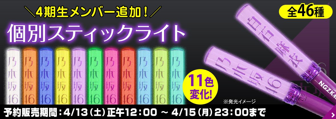 【乃木坂46】『公式個別スティックライト』に4期生カラーが登場!!!