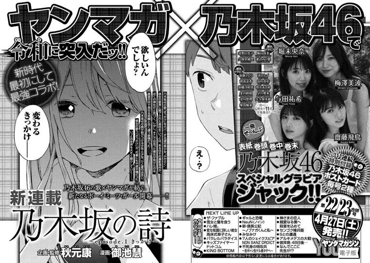 乃木坂46が漫画に!ヤンマガ新連載『乃木坂の詩』秋元康企画・監修の模様!!!