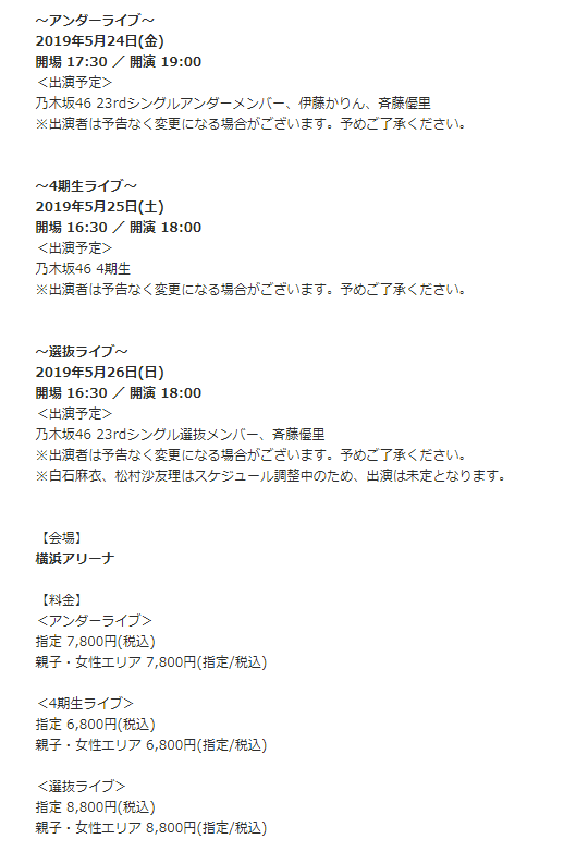 【乃木坂46】5月24~26日『アンダラ、4期生ライブ、選抜ライブ』の公演が決定!会場&詳細がこちら!!!