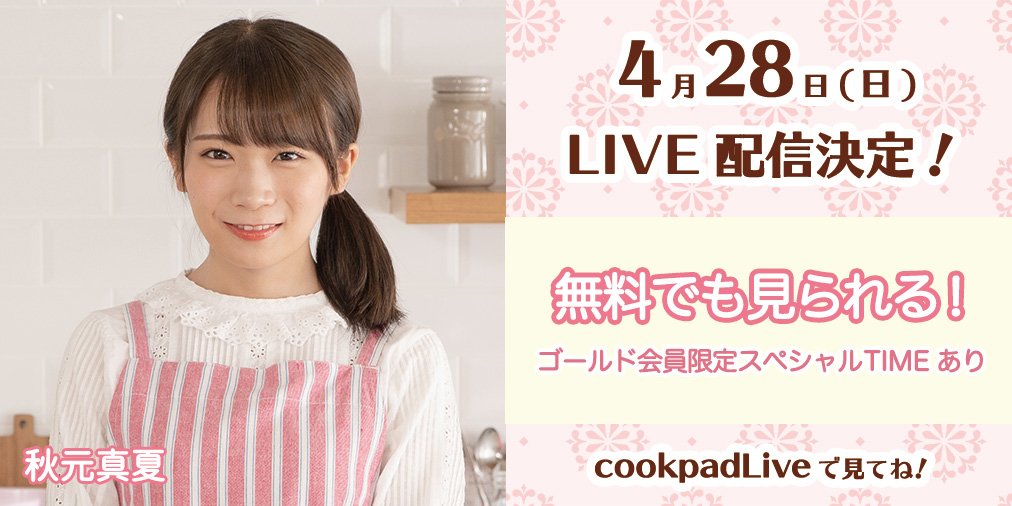 【乃木坂46】秋元真夏 GWにチキン南蛮をつくります🎵 4/28『cookpadLive』配信決定!