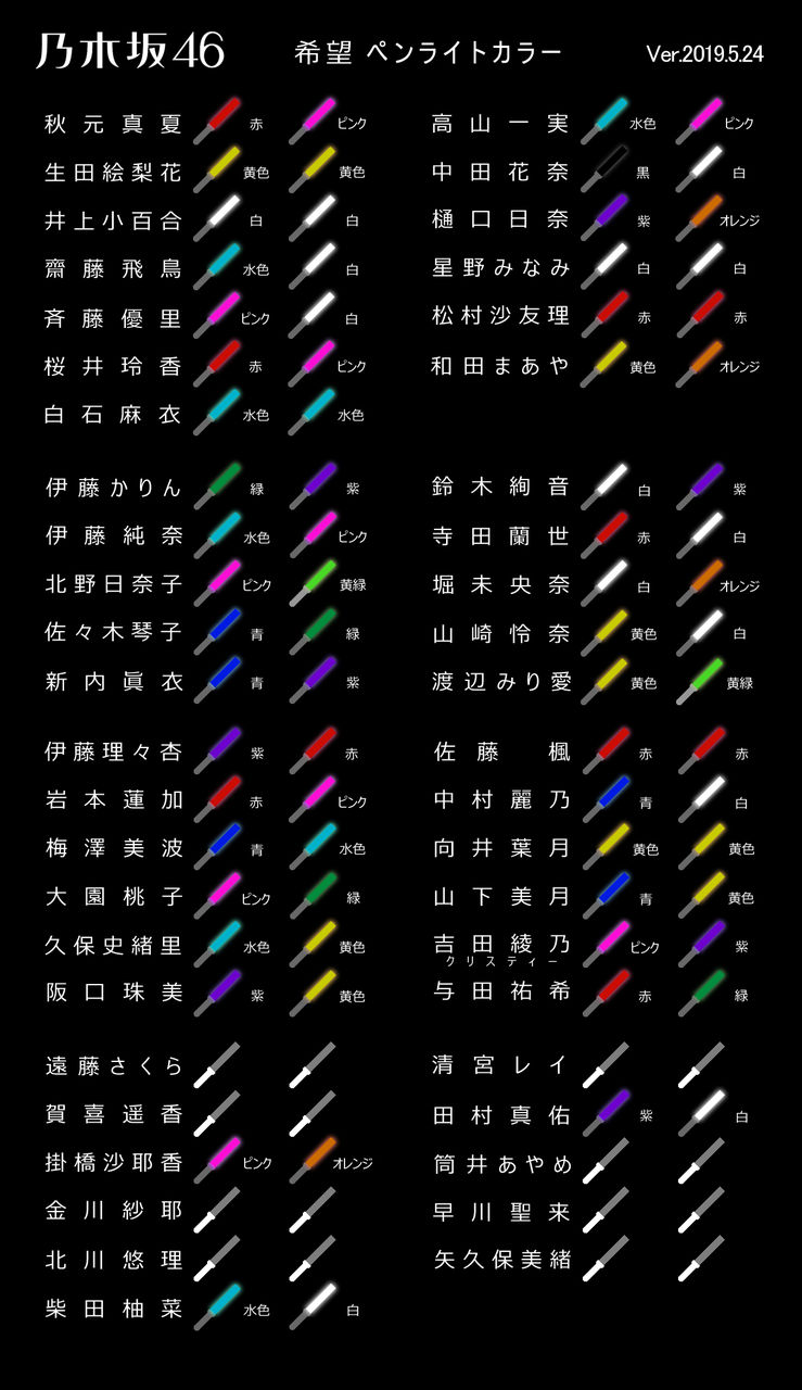 【乃木坂46】最新版!横アリ3daysに向けて『推しメンペンライトカラー』一覧を公開!!!