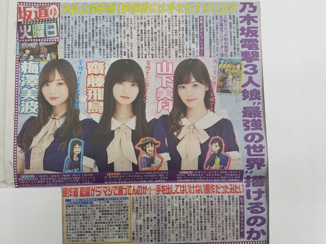【乃木坂46】齋藤飛鳥×山下美月×梅澤美波が2020夏公開映画『映像研に手を出すな!』の出演決定!!!