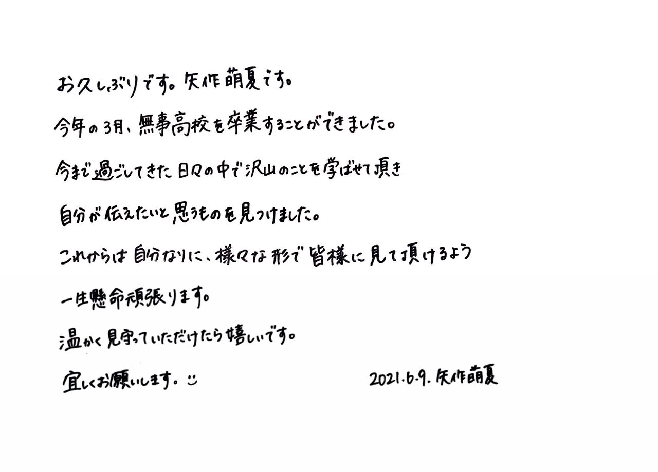 【速報】 矢作萌夏より 重大発表 キタ━━━(゚∀゚)━━━━!!