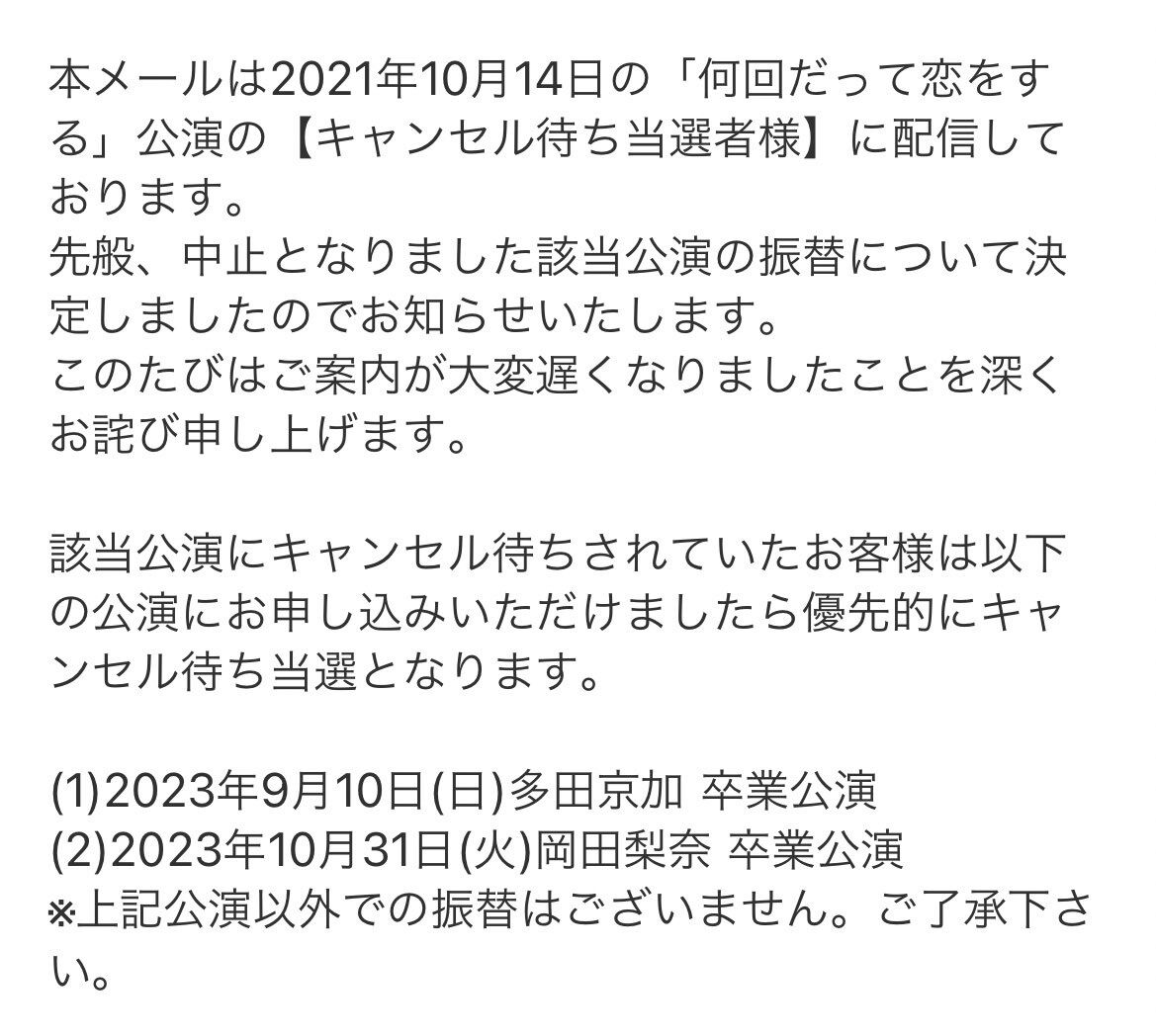 AKB運営さん、2年前に中止になった劇場公演の振替を今更決める