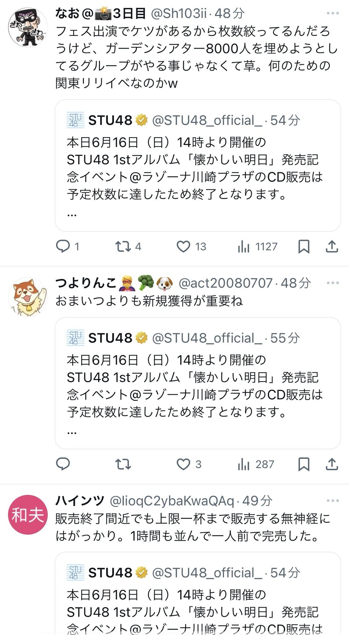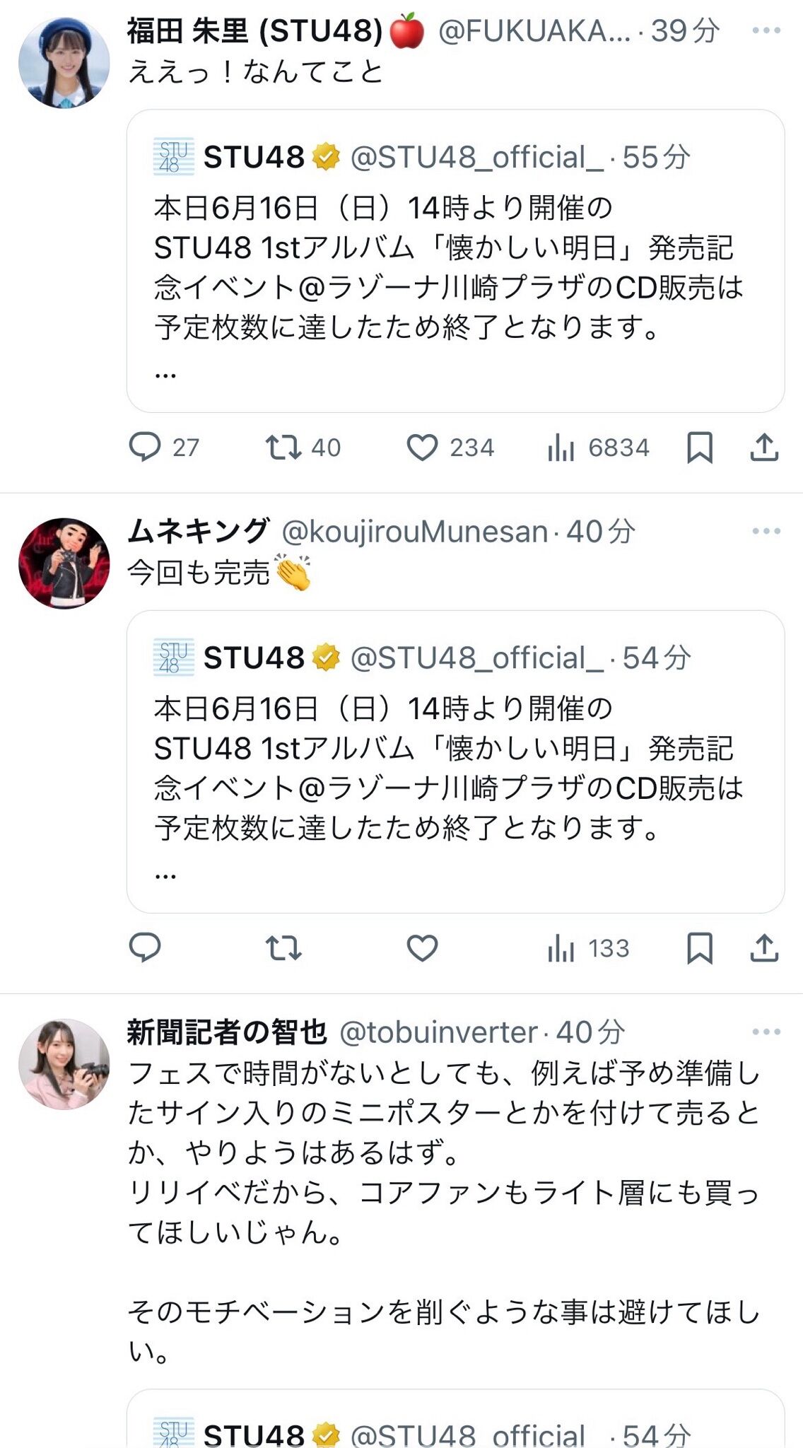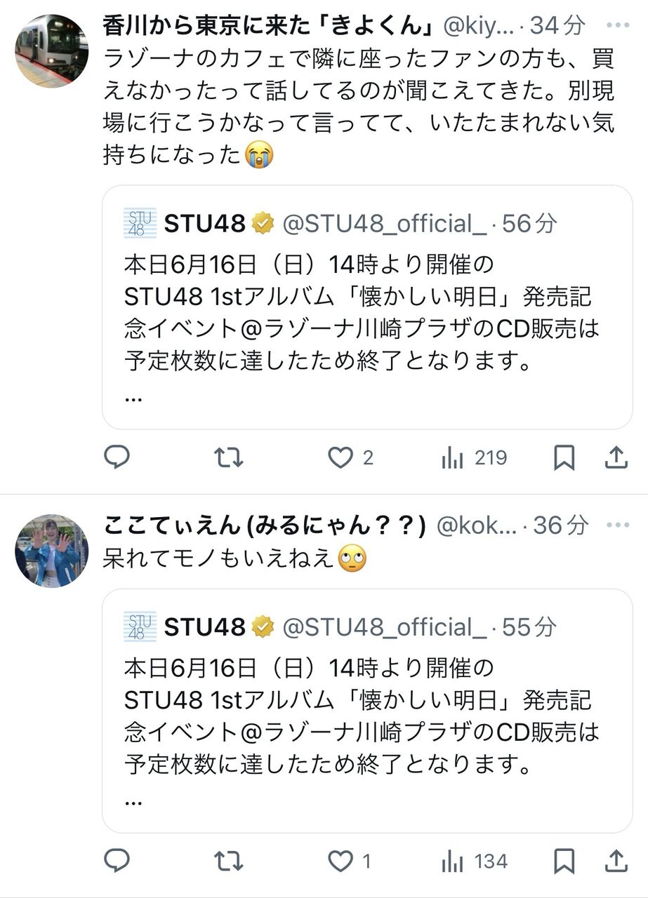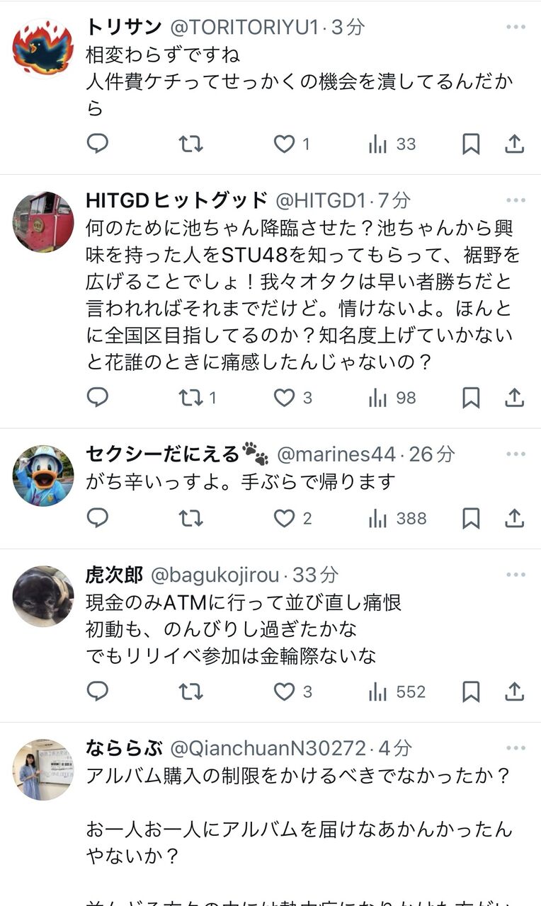 【悲報】STU48さんの4期生お披露目イベント、キャパ230の箱に50人しか来なかった模様・・・