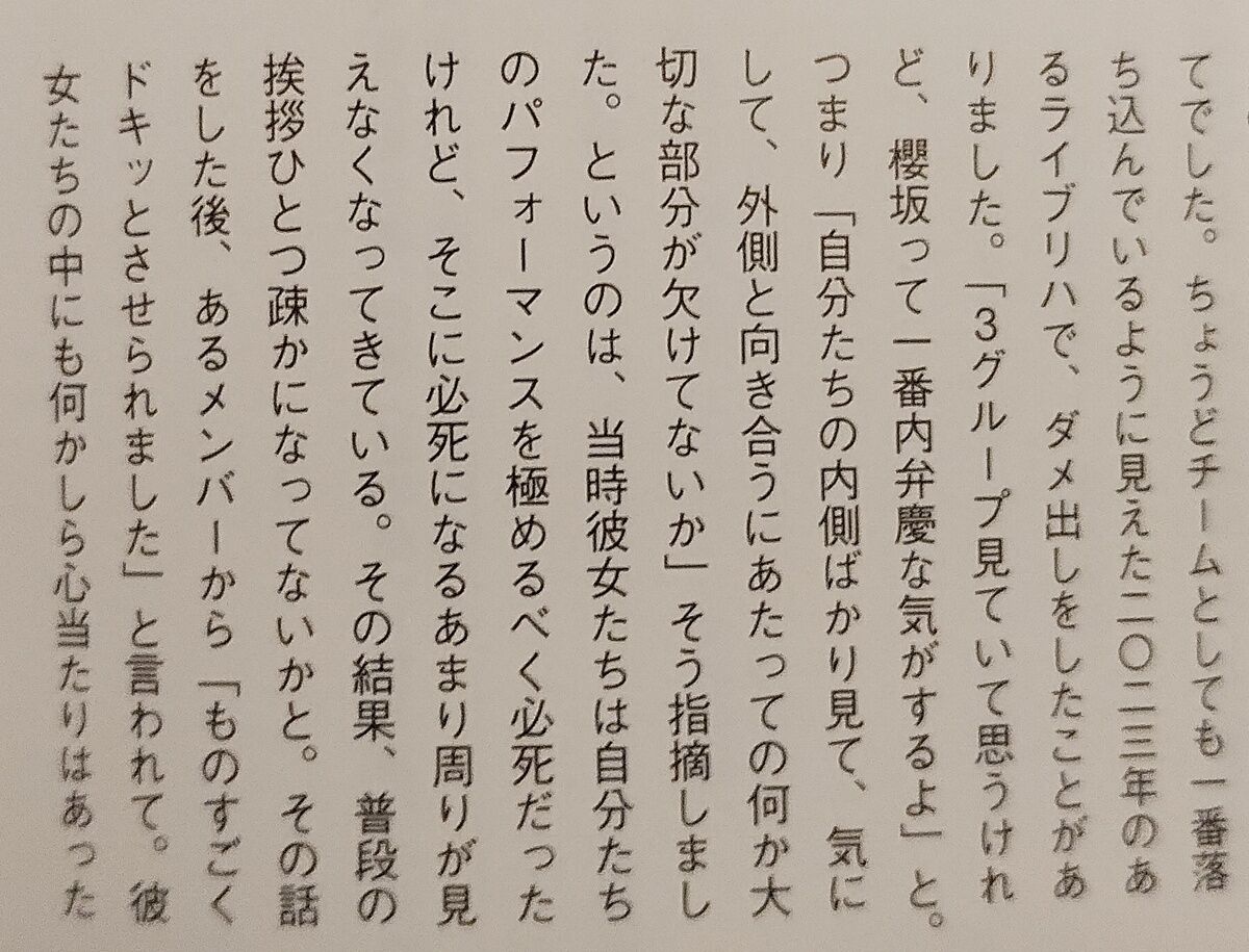 坂道代表 今野義雄 乃木坂「世代交代・本当に仲が良い」 櫻坂「リハでダメ出し・内弁慶・挨拶おろそか」 日向坂「迷い・慢心」