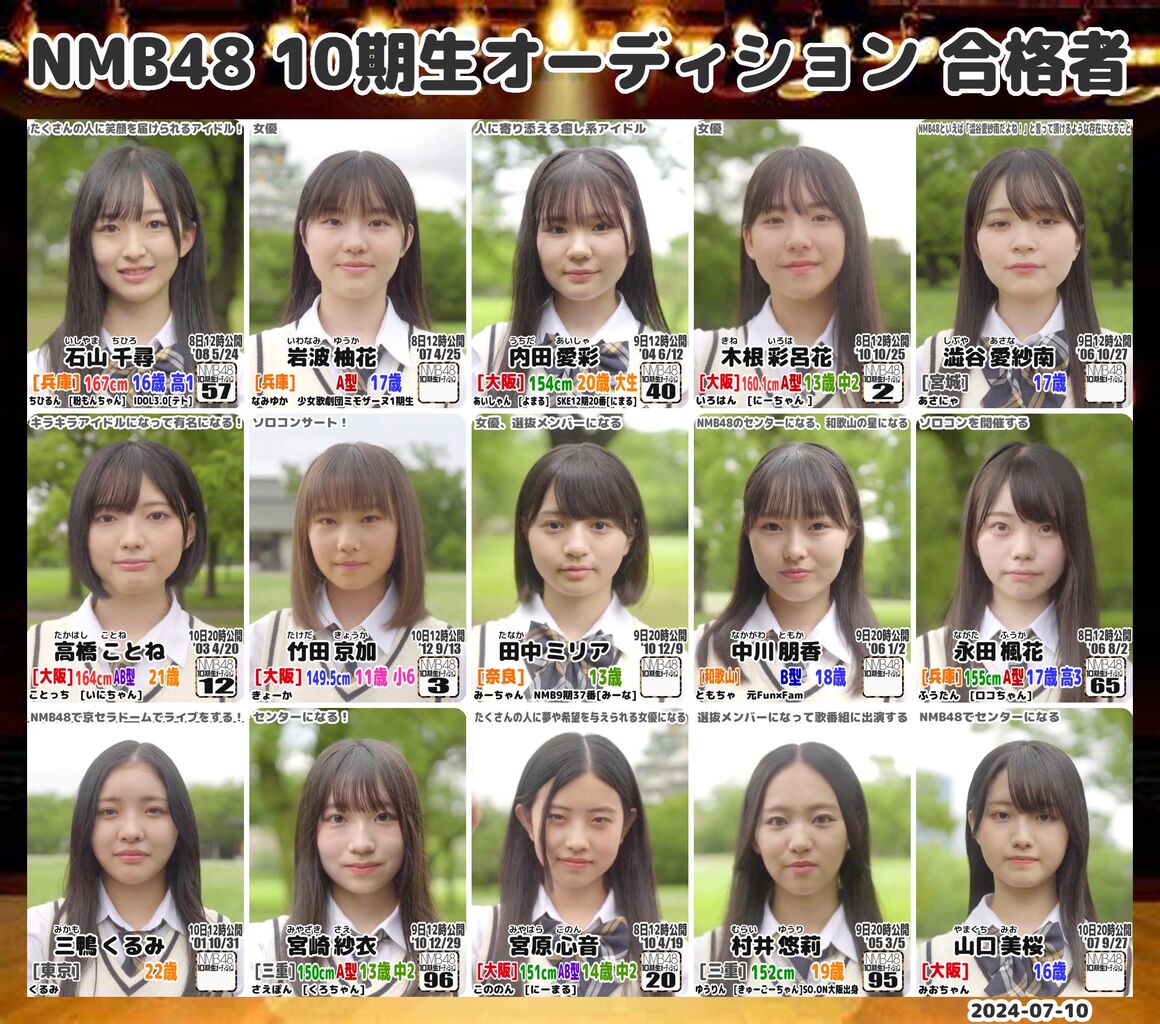 以上、#NMB10期生 15名のお披露目となります。