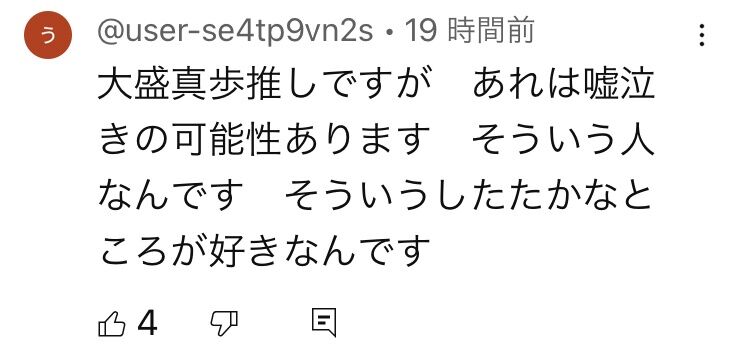 【闇深】大盛オタ「あの大盛真歩の涙は嘘泣き!そういう したたかなとこがある」