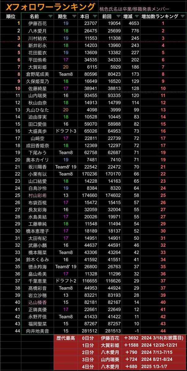 新曲で判明した序列が高いメンバー 12人