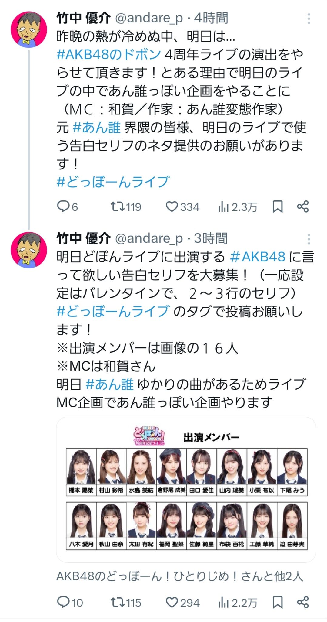 【朗報】明日のどぼんライブ「懐かしの萌え企画」がある模様!