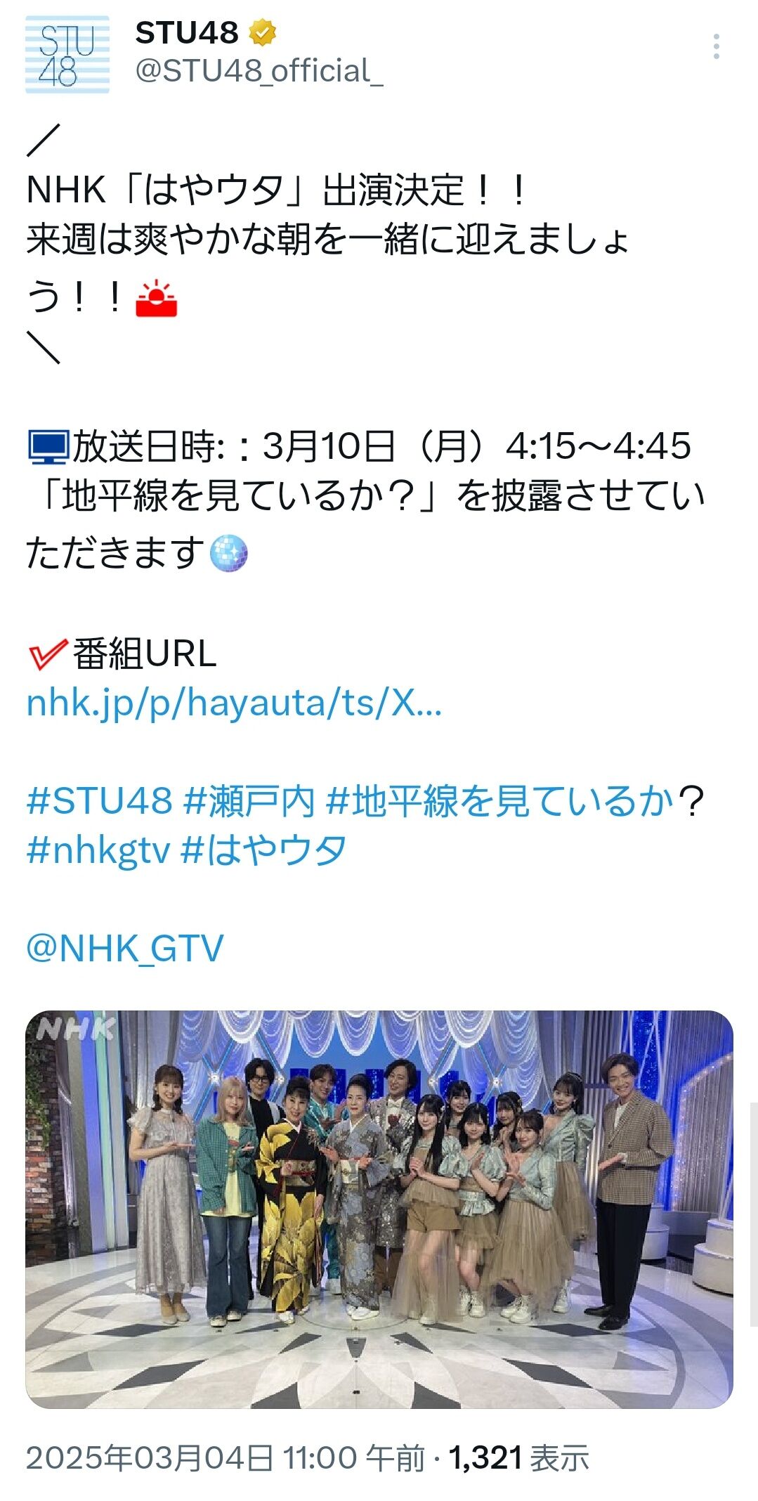 【速報】地上波歌番組にSTU48出演キタ━━━(゚∀゚)━━━!!