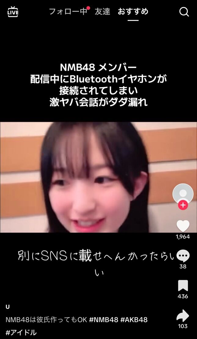 【悲報】NMBメンバーさんの配信でヤバい会話がダダ漏れ…運営自身が「バレなきゃ彼氏作ってもいい」と言ってるのか?wwwww