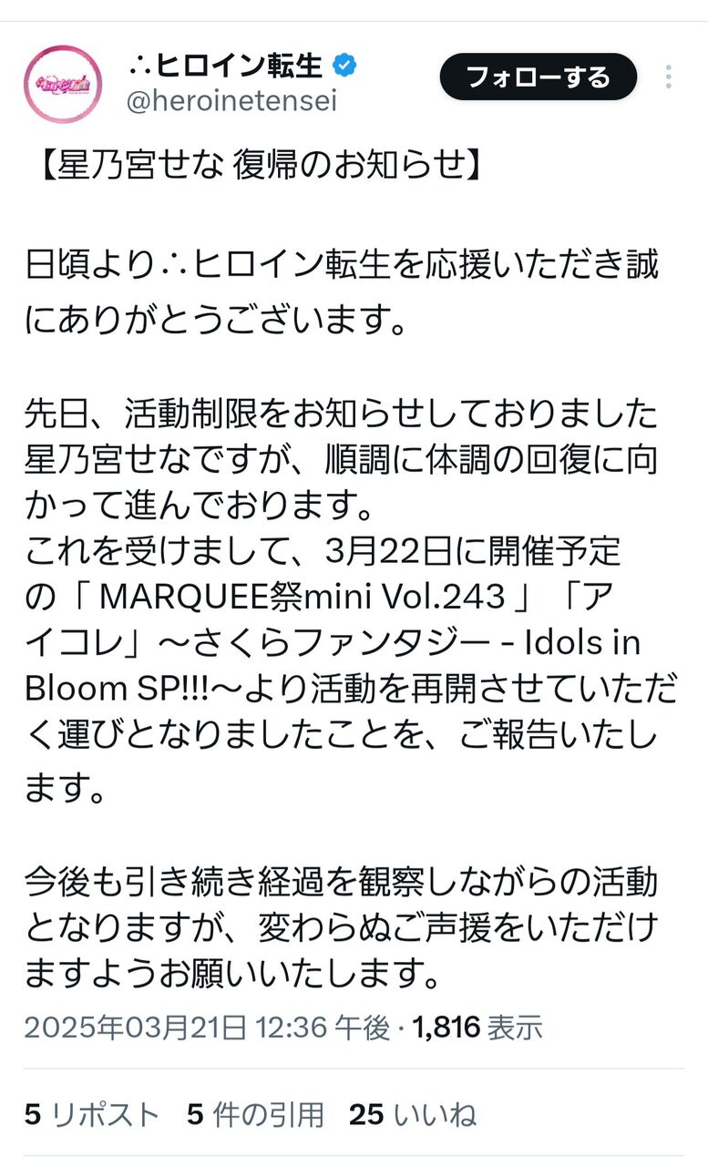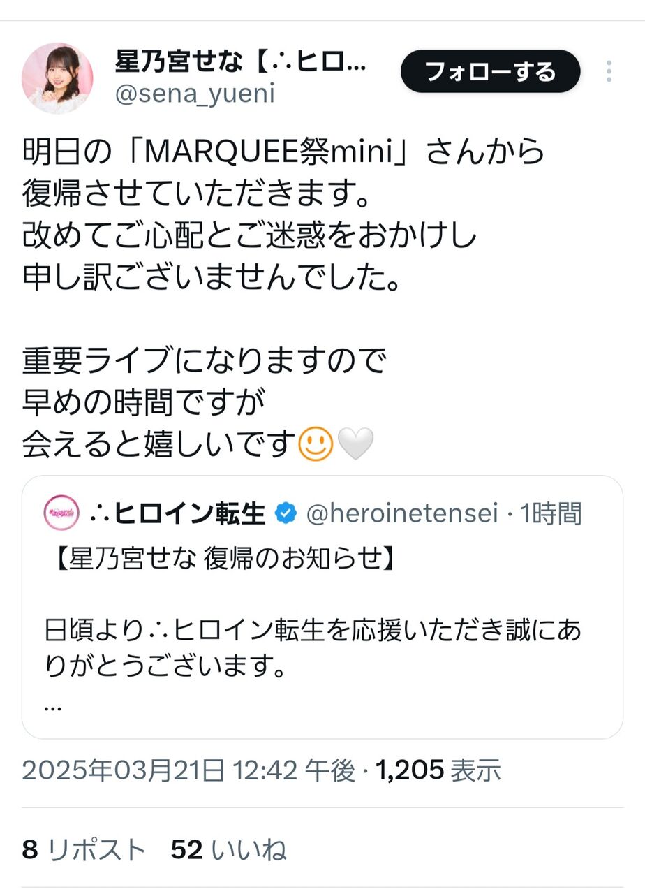 【朗報】星乃宮せなさん、活動再開!!