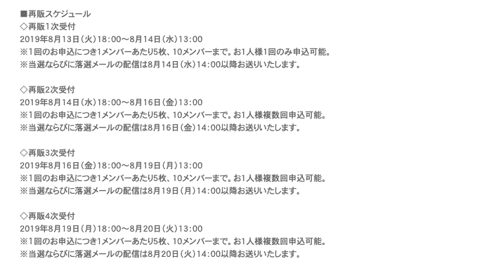 ※当選ならびに落選メールの配信は8月19日(月)14:00以降お送りいたします。◇再販4次受付