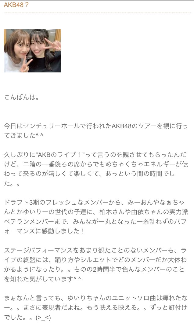 SKE48支配人「AKB48のライブ!一糸乱れずのパフォーマンスに感動」「二階一番後ろでもめちゃくちゃエネルギーが伝わってくる」