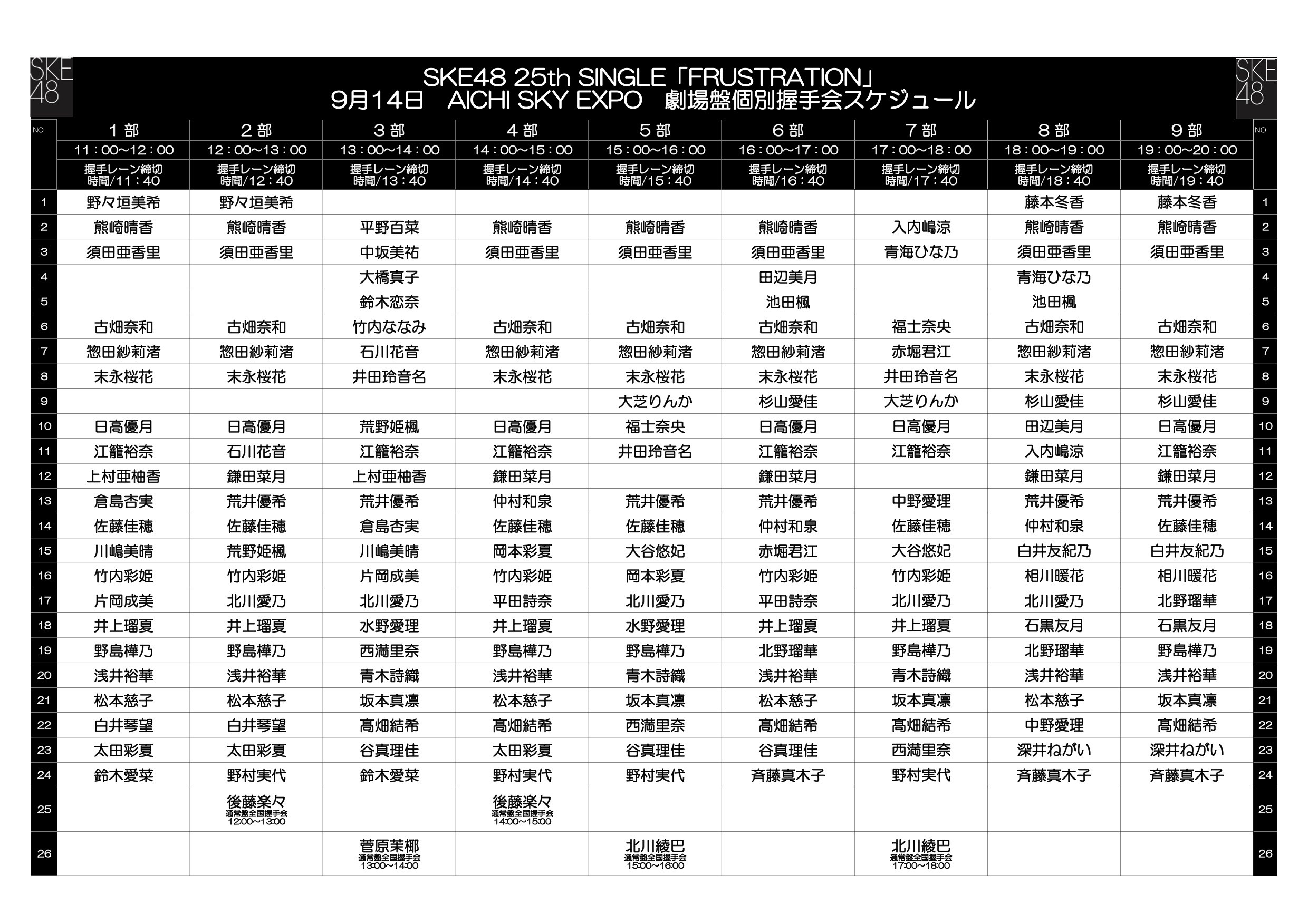 http://www.ske48.co.jp/news/?id=1568263573※同日、同会場にて SKE48 25th シングル「FRUSTRATION」 【菅原茉椰】 (通常盤)全国握手会を実施します。